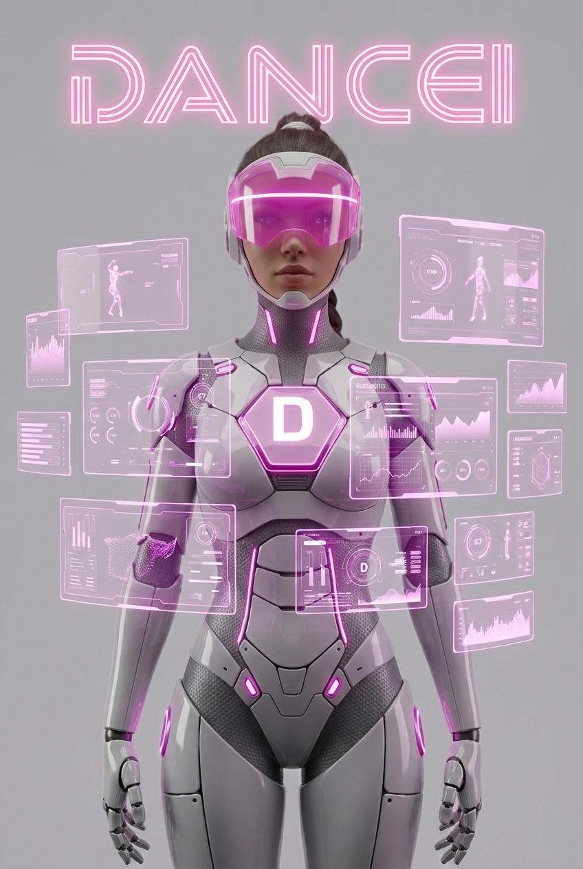 DANCEI is the female face of the AIDJ system—a hybrid entity designed to bridge the gap between artists, the public, and complex data streams in real-time.